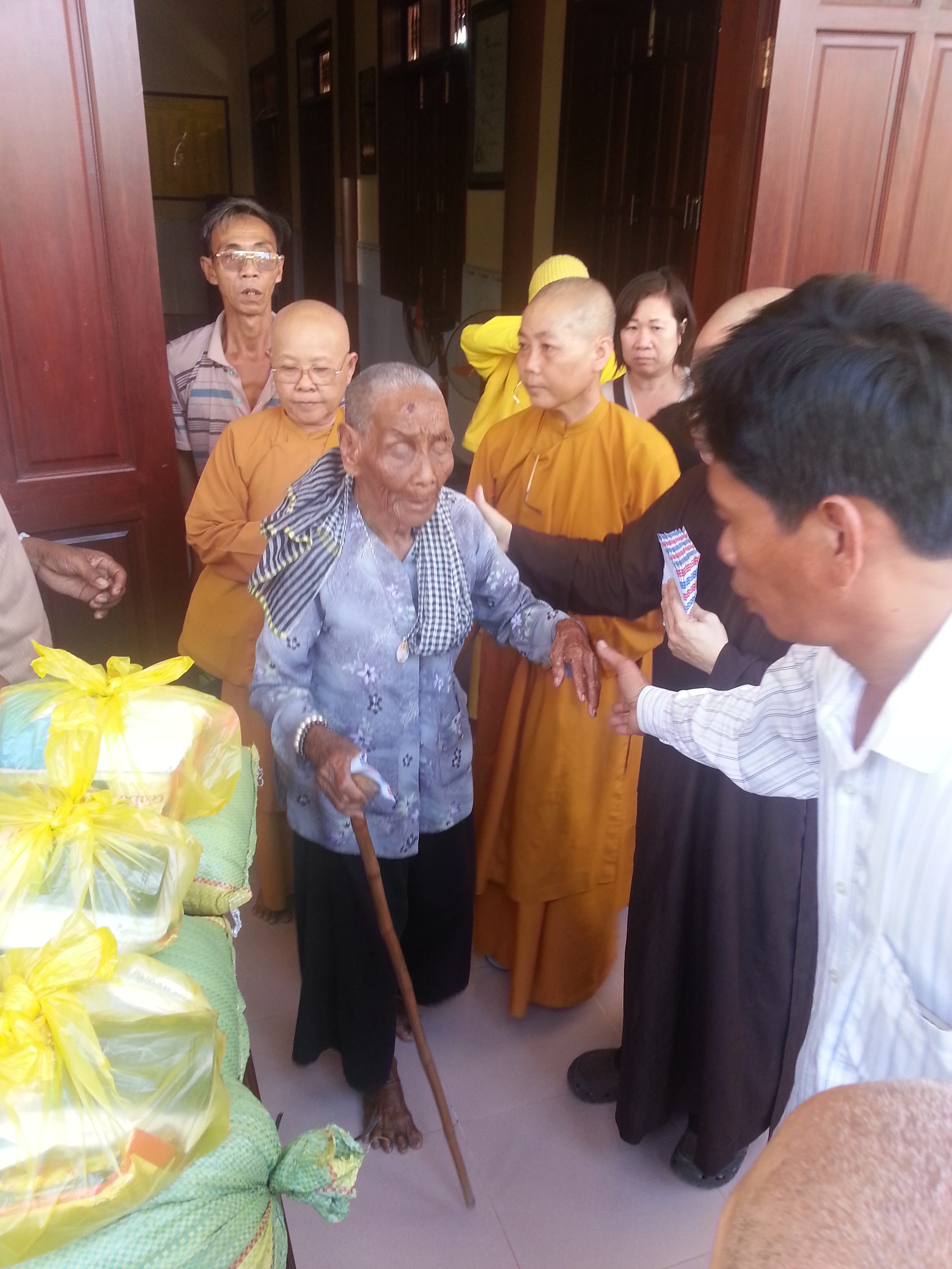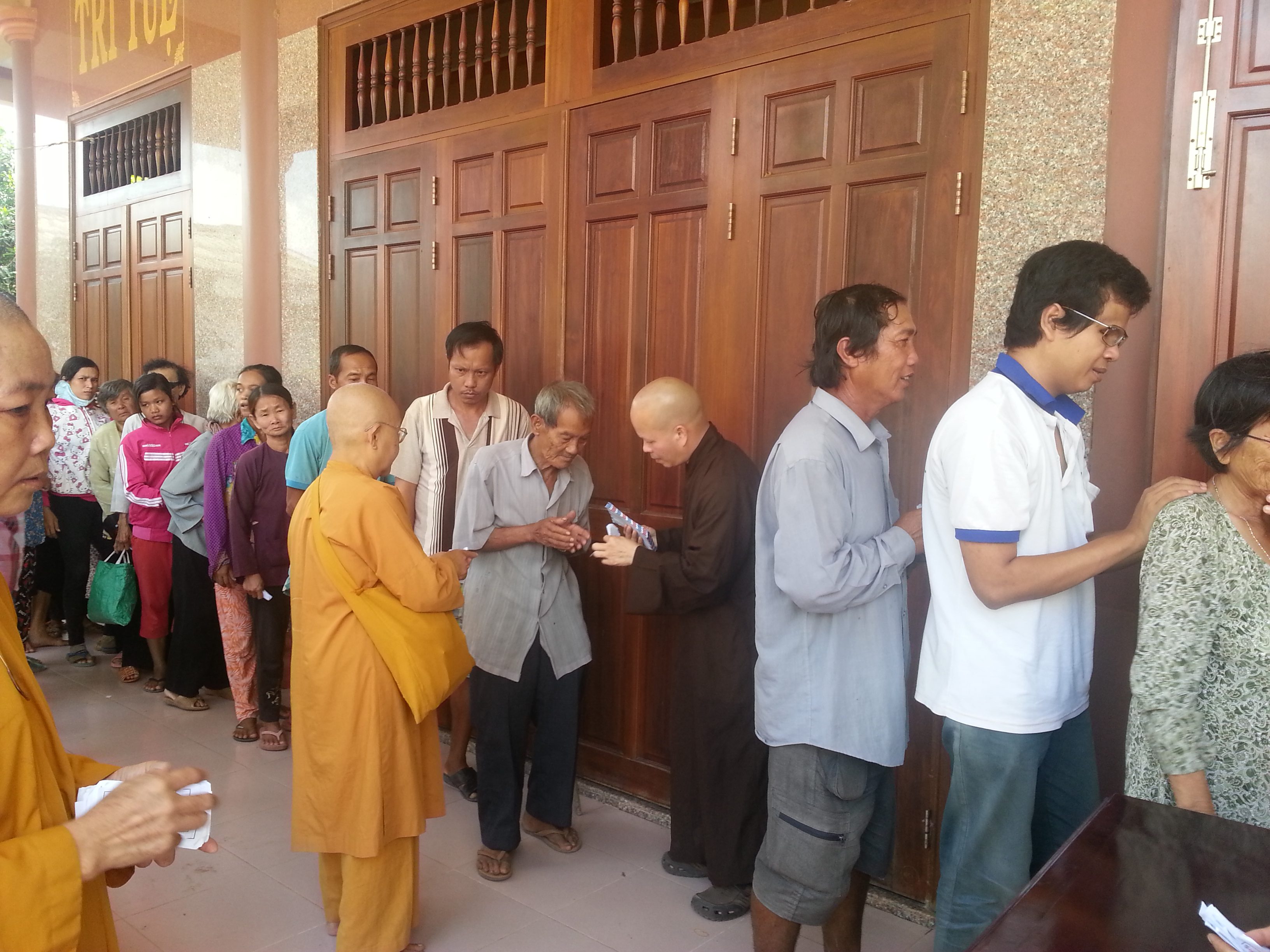 Ven. Bao Thanh came to Vinh Chau province to do charity to help the Blind village. There are hundred of blind people who live in Vinh Chau province in the south of Viet Nam. It is hard for them to take care of their live. There is no job that they could do for living. They most live by the well fare of the government and neighbors. To share part of that, Ven, Thich Bao Thanh on behalf of Xa Loi Charity was there in 2014, to offer food and money and some of the everyday use for them. He went there with the group of Nusn and members of Binh Duong Province.