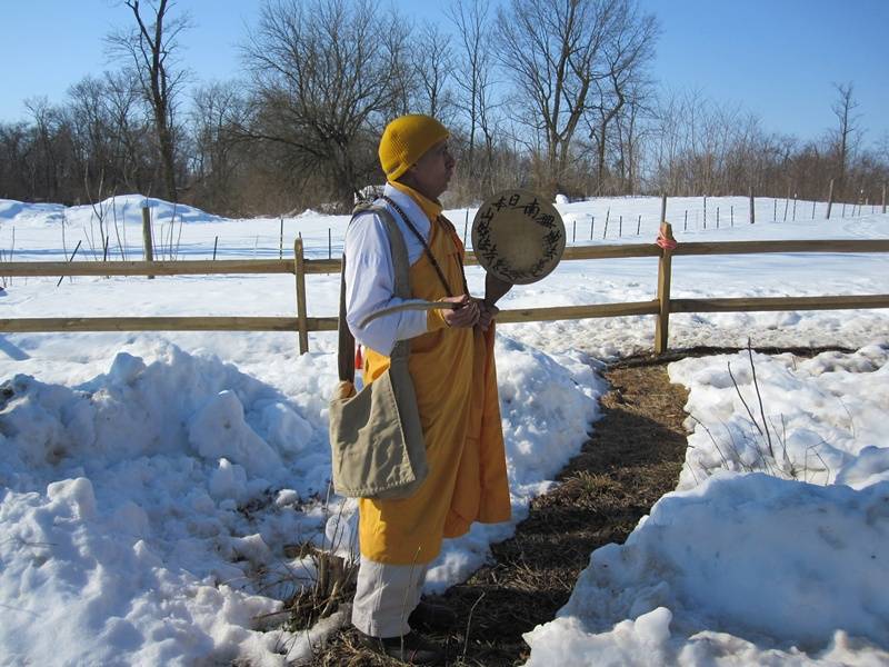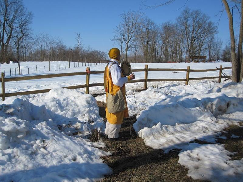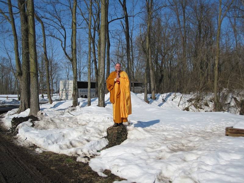 We were welcome buses and members. Cold was not be able to stop us. All the Ven. were out side to welcome all the members.
