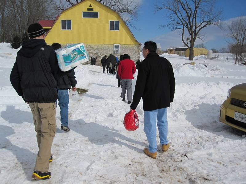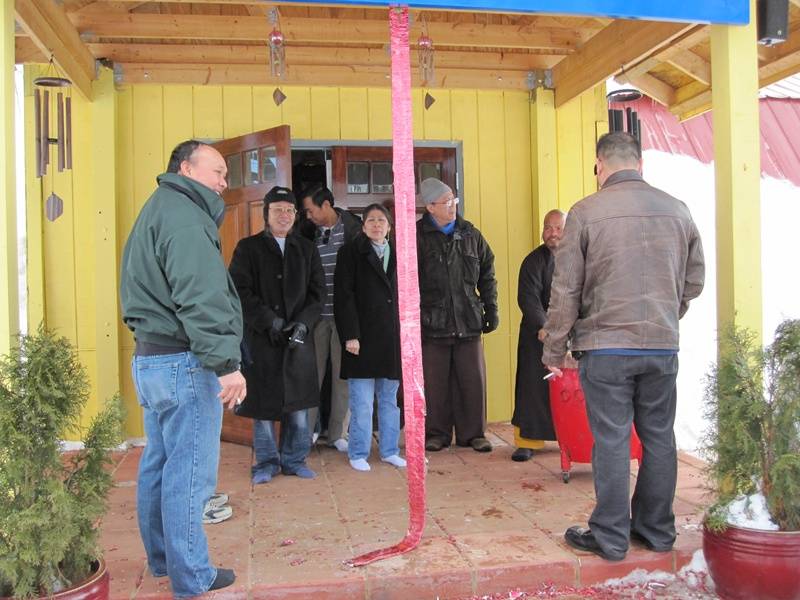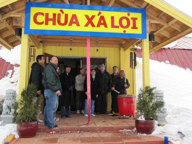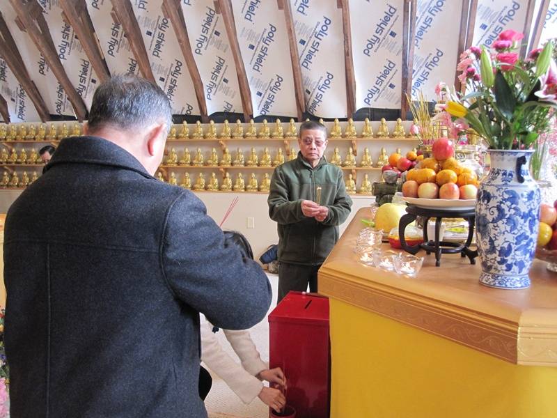 Năm mới lại đến, quý thầy cùng phật tử lại ủi tuyết và dọn dẹp chuyển bị đón xuân. Pháo, đầu lân và đồ ăn mừng xuân đã được chuẩn bị thật là đầy đủ.